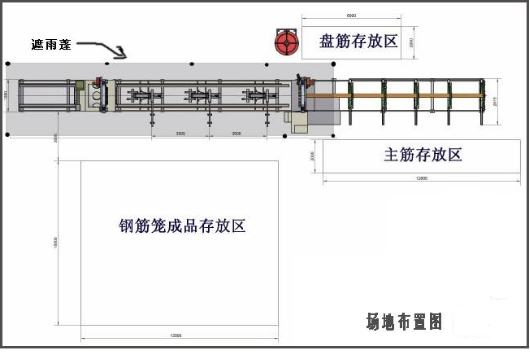 鋼筋籠的成品存放區(qū)要盡可能的大,設備正常情況下,一天可加工200米左右的籠子(二班作業(yè)),要有2~3天的用量庫存;